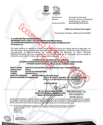 "Este documento es copia certificada del original, expedido en conformidad con la normativa vigente. Se certifica que su contenido es fiel y exacto al documento original."